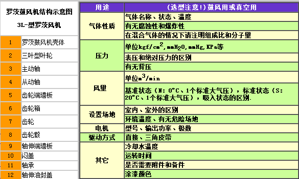 羅茨風(fēng)機參數(shù)